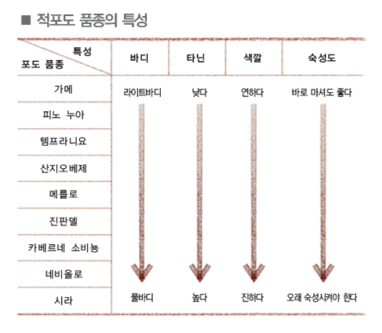 마지막으로, 적포도 품종별 특성을 한 눈에 볼 수 있는 표로 글을 마무리하겠습니다. 레드와인 고를 때 도움이 되시기 바랍니다! :)