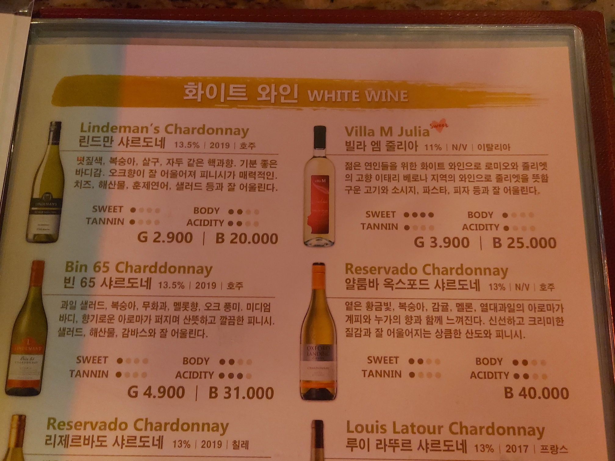 이곳은 같이 마시는 친구가 와인을 그닥 좋아하지 않고 달달한 화이트 와인은 그나마 마신다고 해서, 추천해주면서 저도 처음 마셔 본 와인이예요. 젊은 연인들을 위한 화이트 와인이라는 설명이 로맨틱하게 다가오는 와인으로, 로미오와 줄리엣의 본고장인 이탈리아 베로나 지역에서 생산된 와인이예요. 구운 고기, 소시지, 파스타, 피자와 잘 어울린다고 하지만 이미 저녁을 든든하게 먹고 온 터라 치즈와 함께 가볍게 잔으로 즐겨 보았습니다.