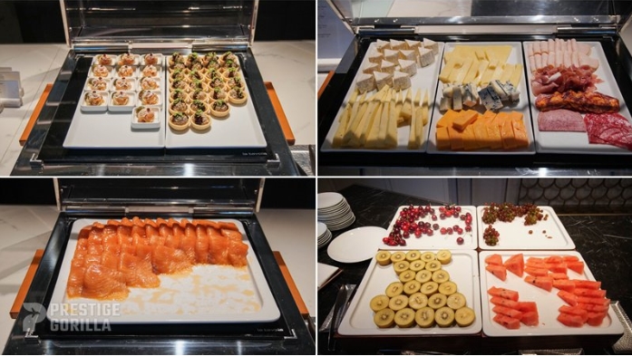제공 메뉴: 샐러드, 카나페, 치즈, 연어, 과일, 베이커리, 디저트