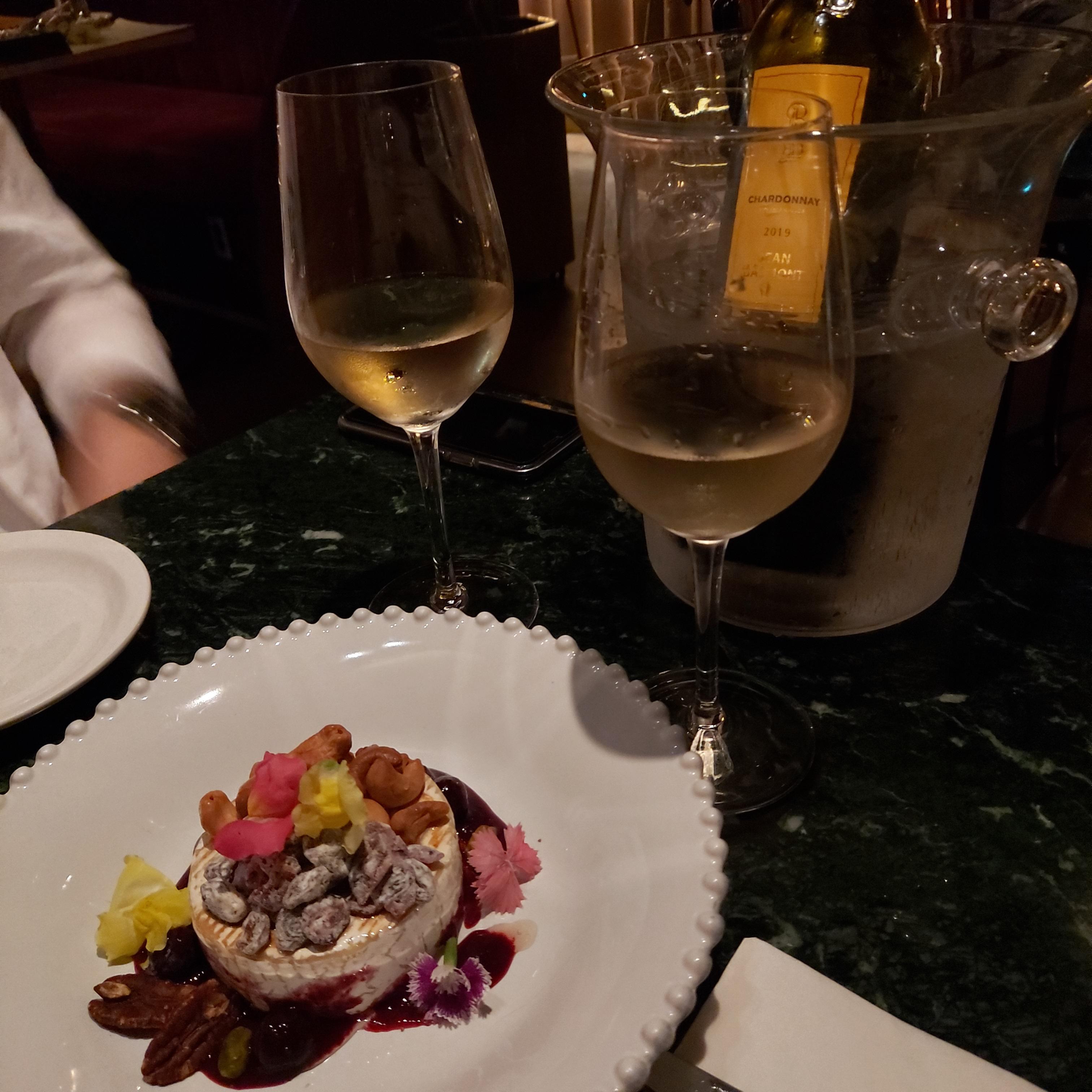 마냥 가볍지만은 않은 느낌의 장 발몽 샤르도네 와인은 해산물이나 샐러드, 야채나 튀김 요리와 잘 어울리는 와인입니다. 하지만 '와인도둑' 이라는 별칭을 가진 까치양조장만의 브리 치즈 구이는 구운 견과류와 건과일, 생화가 곁들여진 아름다운 플레이팅만큼 조화로운 마리아주를 느낄 수 있었답니다. 좋은 조합의 와인과 요리에 완벽하게 조화로웠던 그 밤.