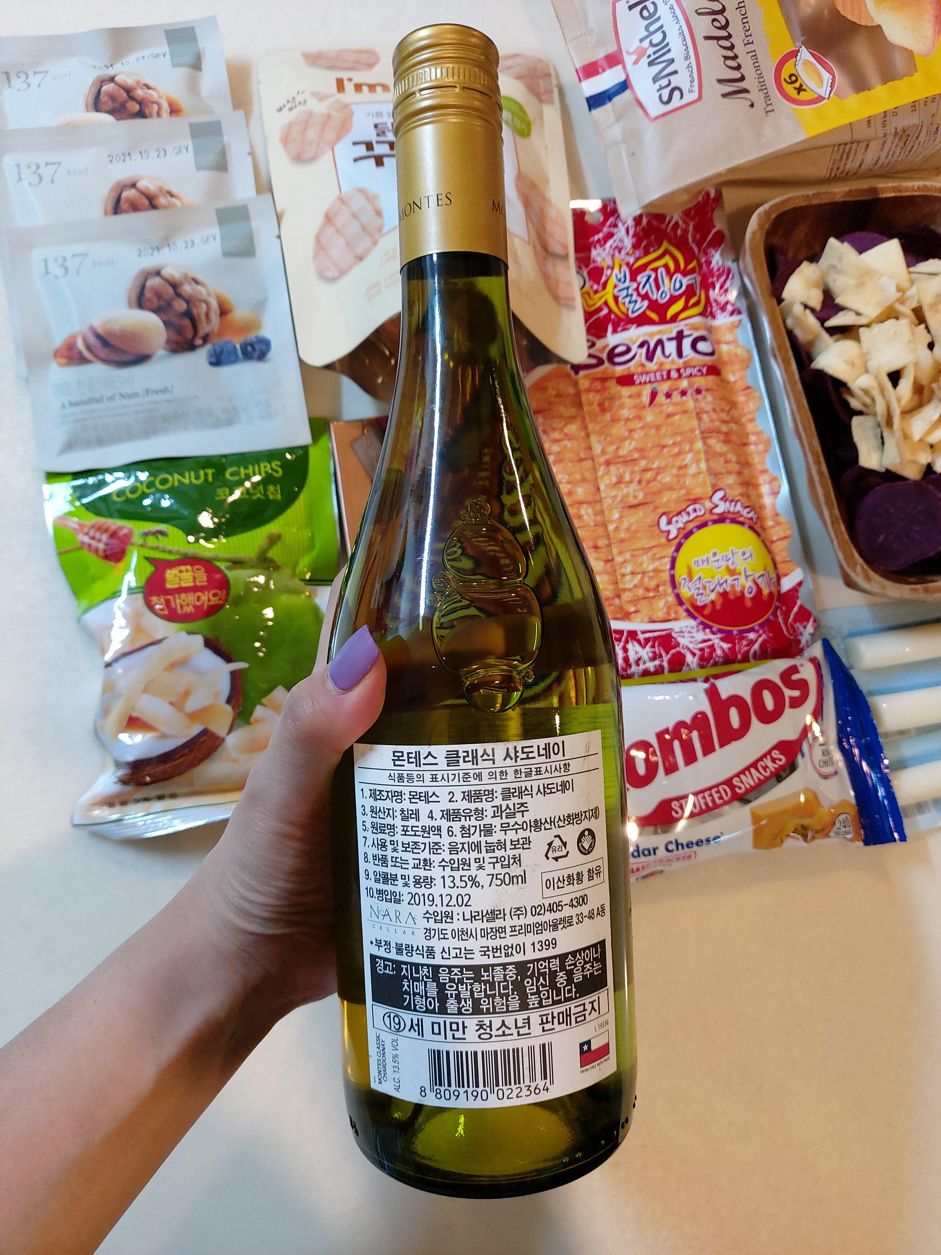 몬테스는 칠레의 대표적인 와인 브랜드로, 특유의 열대과일 향과 적당한 산미가 매력적인 와인이예요. 화이트 와인 품종 중에 가장 흔하기는 하지만 가장 애정이 가는 품종이 샤도네이이기도 하고, 와인 단일 브랜드 최초 누적판매 1천만병 돌파했다는 말에 끌리듯이 구매해 보았습니다. 산도와 바디감 또한 적당하다는 말에 망설임 없이 초이스!