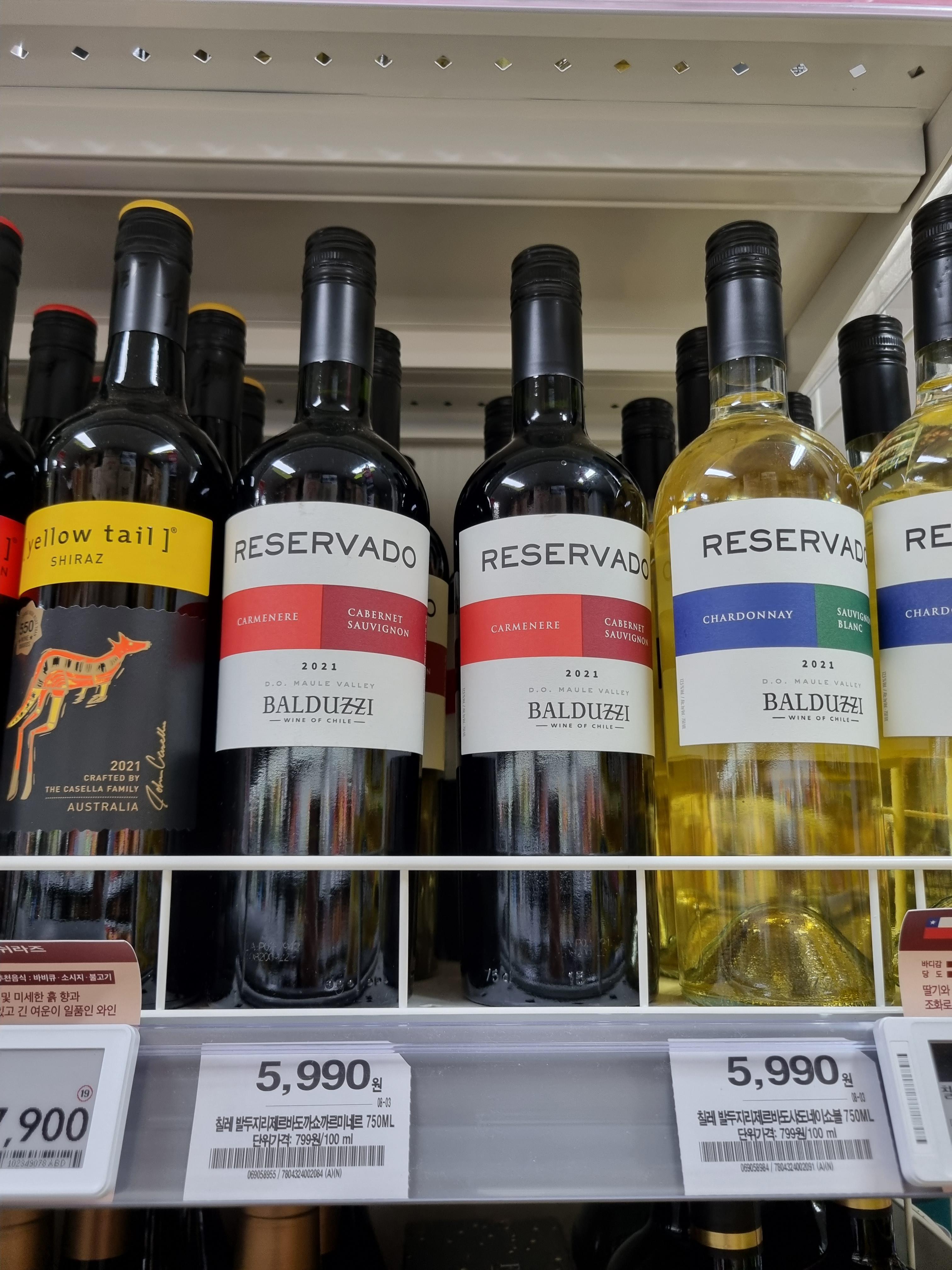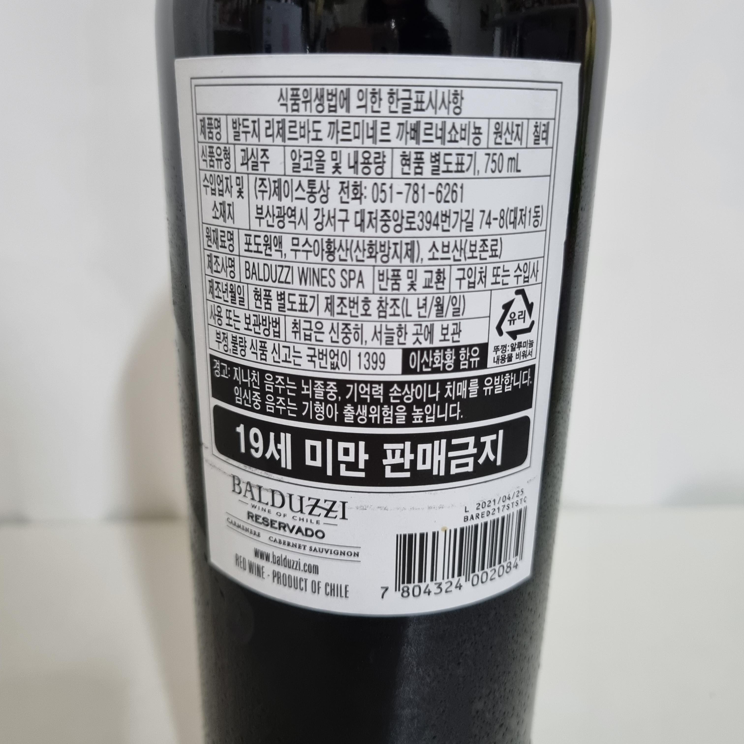 하루 한 잔 레드와인을 위해 도전해 본 와인은 칠레 발두지 리제르바도 까르미네르 까베르네쇼비뇽입니다. 이름이 상당히 길지면 발두지라는 생산자가 생산한 칠레산 까쇼 레드와인이예요. 가격이 무려 한 병에 5,990원! 동네 홈플러스 익스프레스에 저렴한 와인이 종종 들어오는데, 이번에 새로 들어왔길래 고심하다가 구매해 보았습니다. 날이 더워 화이트 와인도 떙기지만 레드와인이 몸에 좋다니 레드로 직진하는 걸로.