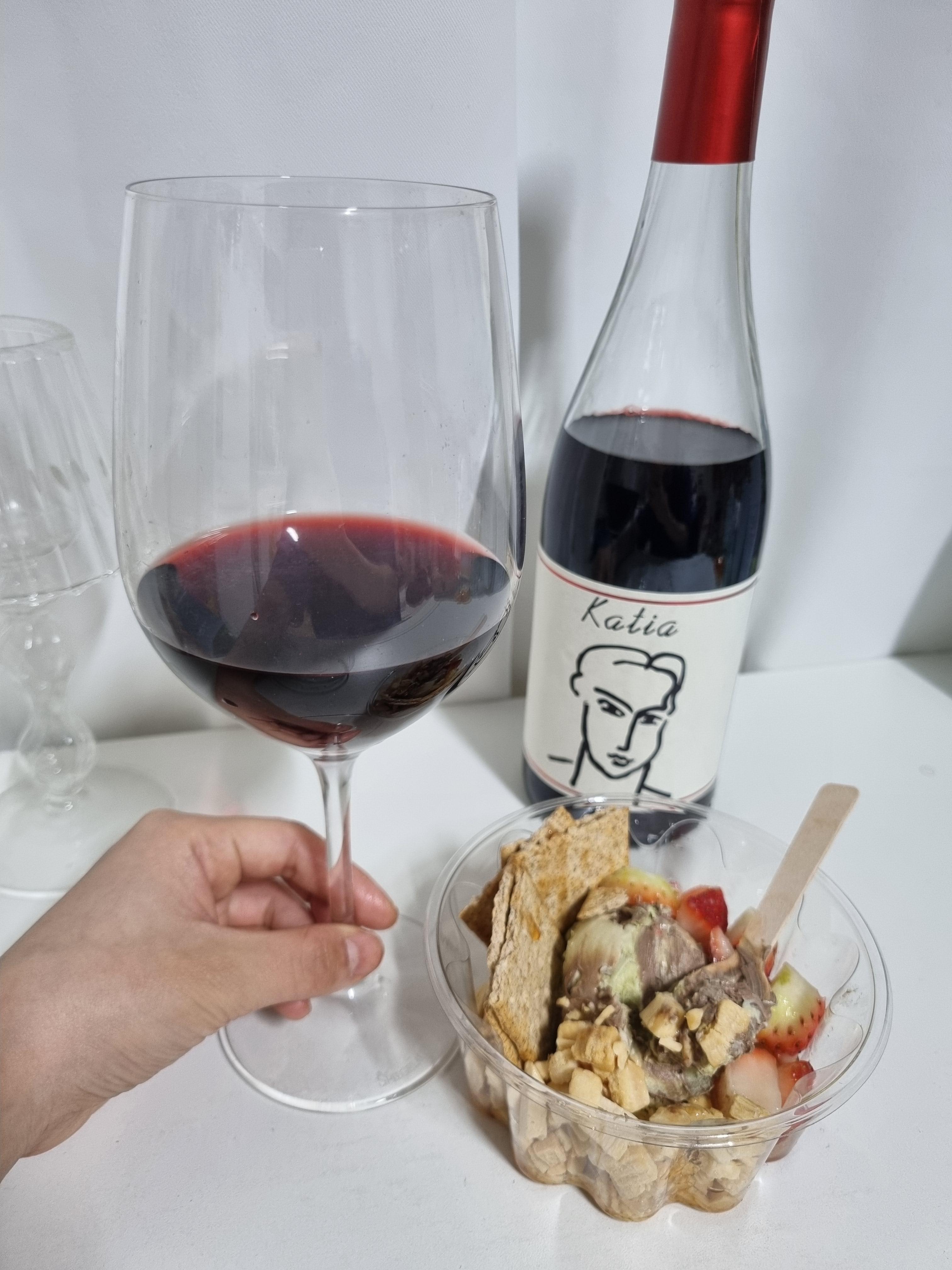 사실 가장 중요한 것은 와인의 맛이기는 한데... 저는 생각한 것보다는 살짝 아쉽기는 했어요. 물론 저렴한 세븐일레븐 와인이긴 하지만, 같은 라인의 앙리마티스 와인인 나디아 블랑 화이트 와인을 꽤나 만족스럽게 마셨던 것에 비하면 떫은 맛이 도드라지고 끝맛은 살짝 밍밍해서 원래 이런가... 싶었는데 열어두고 시간이 조금 지나니 특유의 향이 사라지면서 점점 부드러워지고 마시기 편해지더라구요. 바디감이 팍 느껴지거나 너무 달달하지 않고, 살짝 애매하게 드라이한데 그래서 그냥 무난하게 마시기 좋습니다. 블랙베리와 초콜릿 계열의 향이 살짝 느껴지면서, 묵직하지 않은 바디감이라 부담스럽지 않게 마실 수 있었어요. 육류 대신 그릭요거트, 과일을 곁들이니 오히려 요거트볼의 맛이 더 잘 느껴져서 좋았답니다.